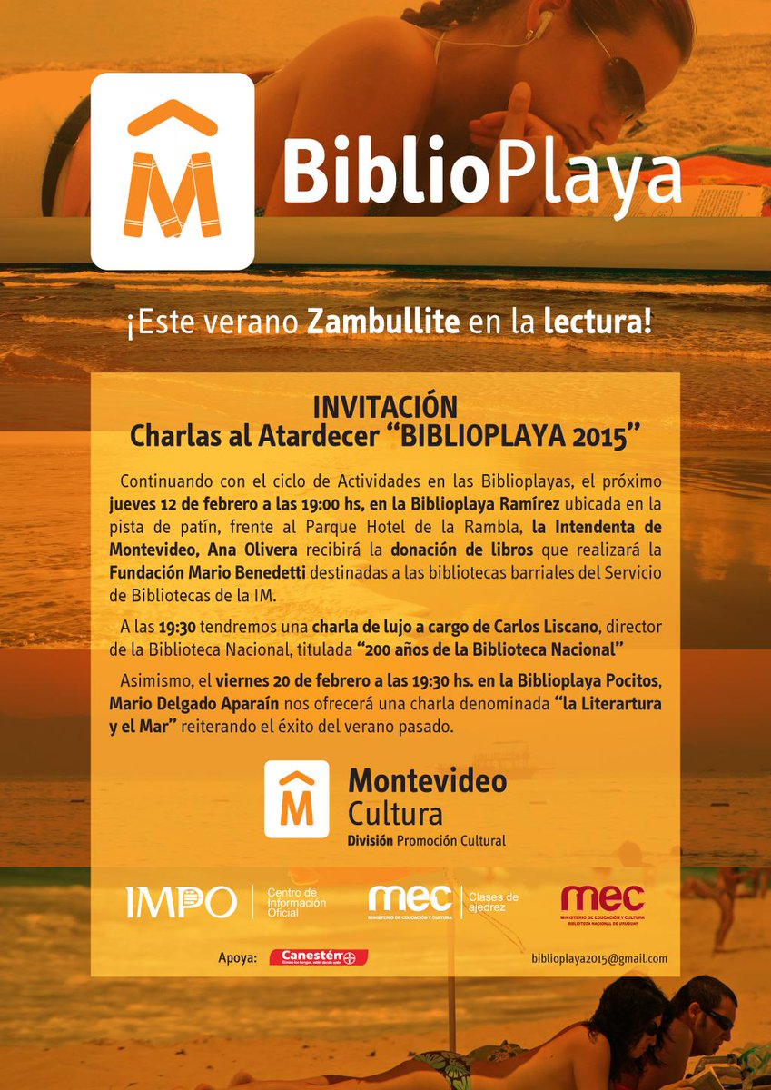 La División Promoción Cultural de la Intendencia de Montevideo, está llevando a cabo actividades en las playas de la capital. Estas actividades forman #biblioplayas2015 y constan de préstamos de libros, actividades con los autores, charlas, etc.