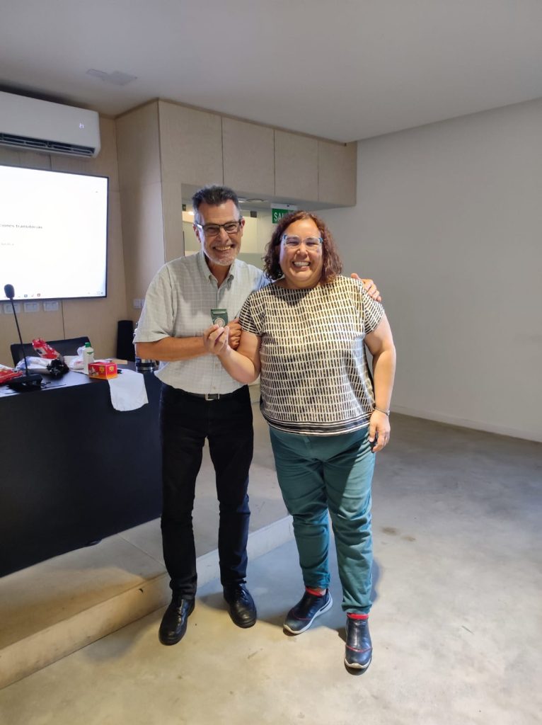 Entrega de medallas a las socias con 25 años en el padrón. la Asamblea General Ordinaria de la Asociación de Bibliotecólogos del Uruguay, lunes 17 de noviembre de 2025.